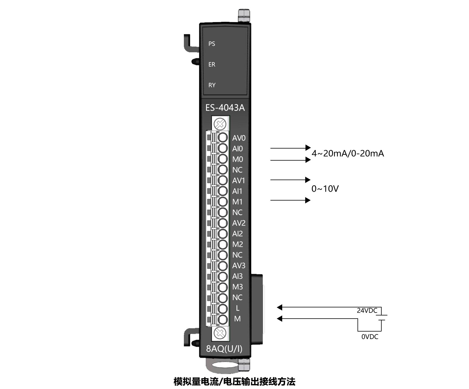 薄片型多功能分布式I/O,模擬量輸出4AO,分辨率16位,輸出誤差:±0.1%(滿量程),4-20mA,0~10V,24VDC