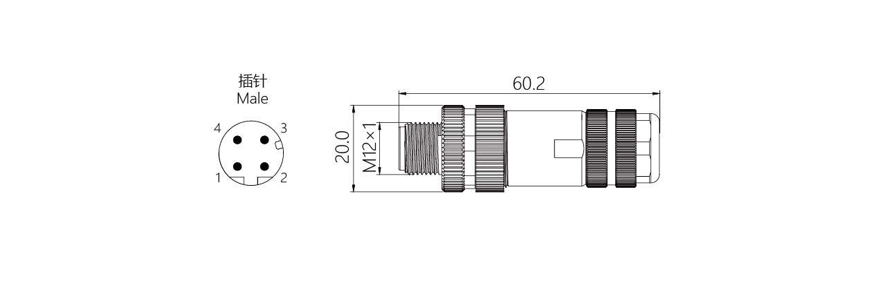 規格描述:M12連接器,直型針,螺釘接線,D-Code,全金屬