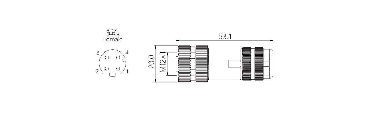 防護等級:IP67(插好并擰緊后) M12